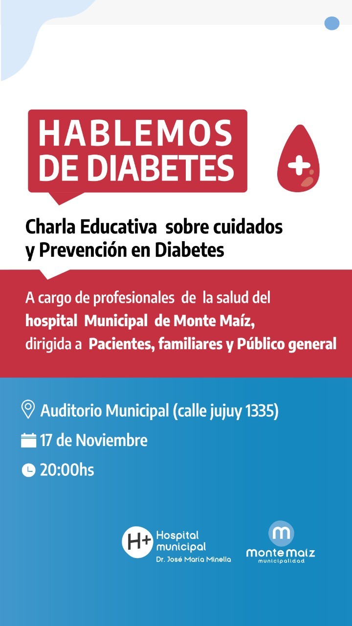 El Hospital Municipal, Dr. José María Minella, invita a la población a participar de la charla educativa sobre cuidados y prevención en diabetes.
