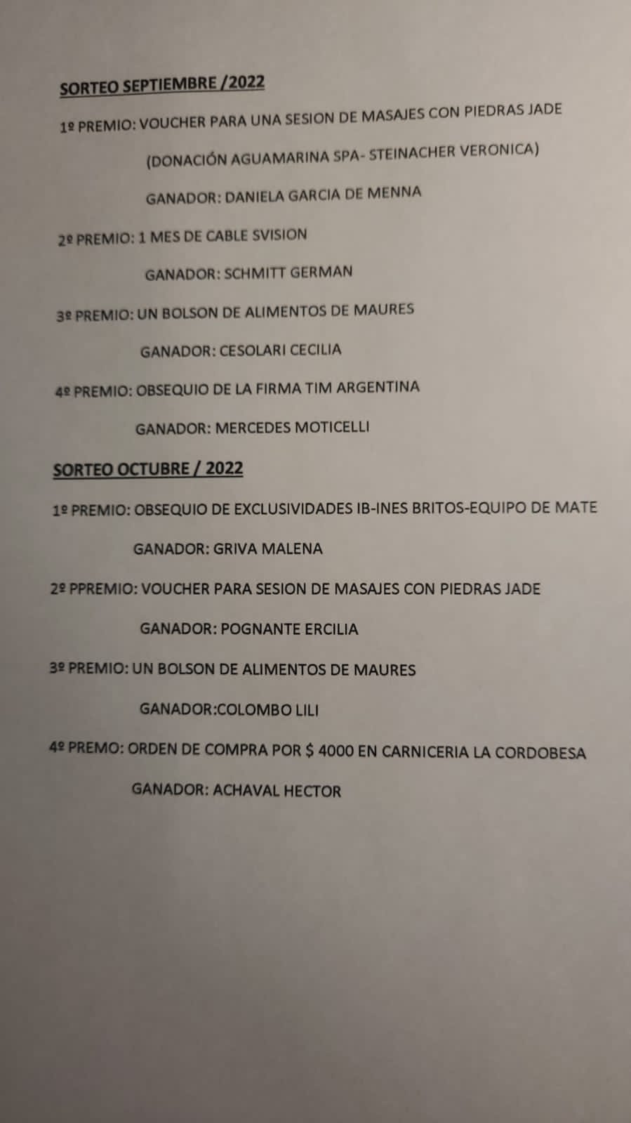 Se realizó el sorteo del bono colaboración amigos del hospital. Del mes de septiembre y octubre 2022. Los ganadores son:
