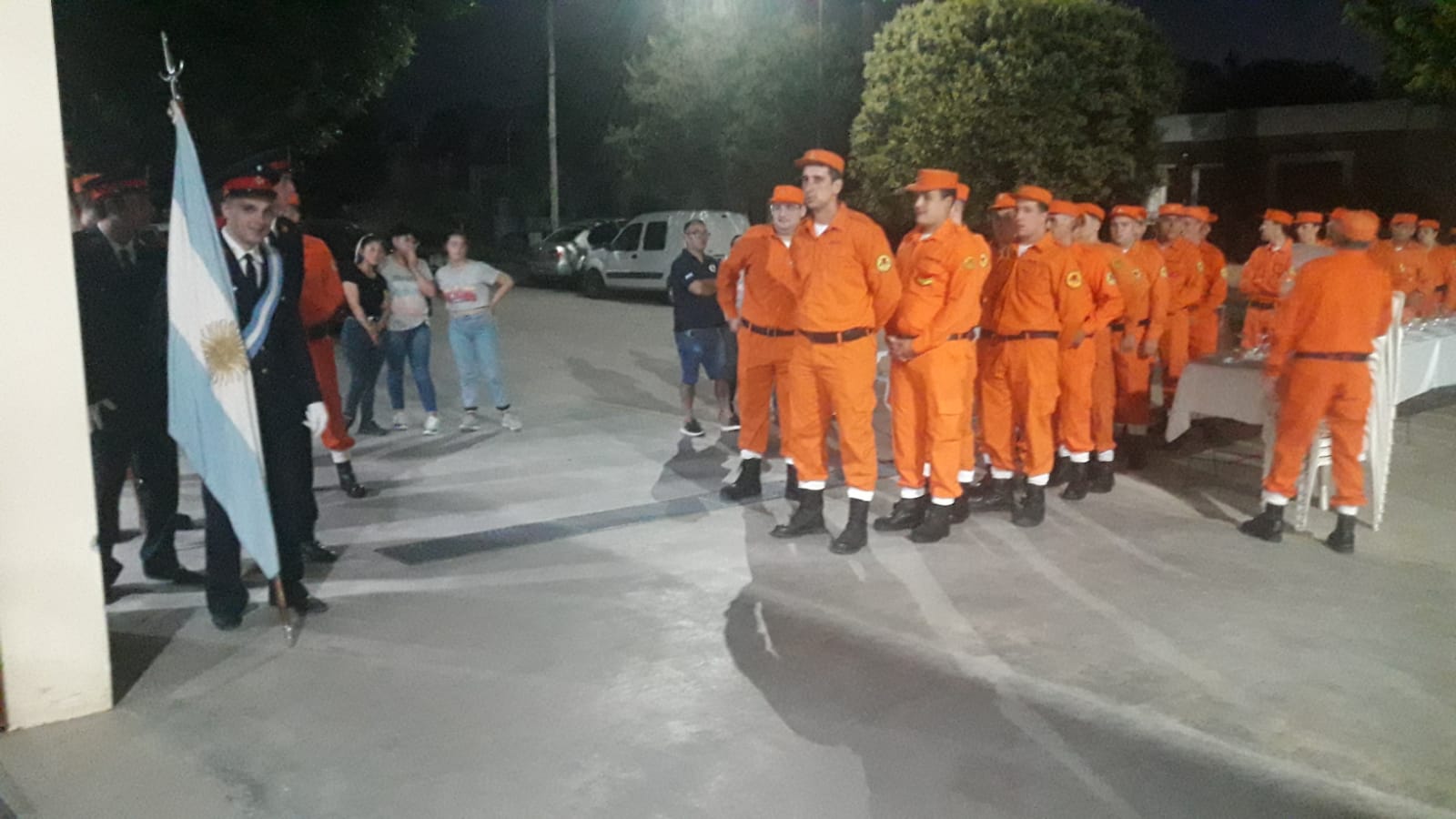 Una vez finalizado el acto, los Bomberos, junto a familiares y amigos, compartieron una cena al aire libre, en la calle Mendoza, frente al cuartel.