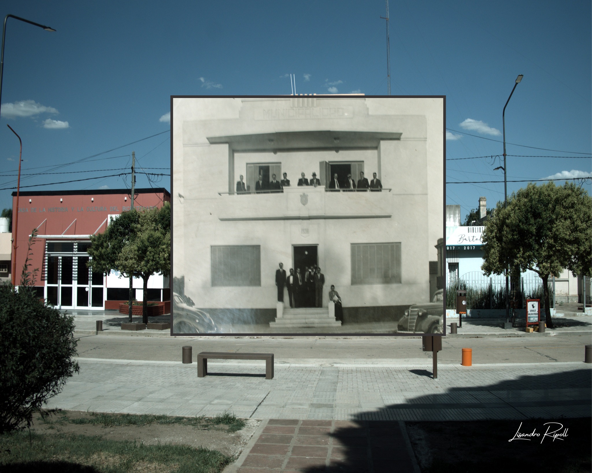 “Monte Maíz en el Tiempo” es una muestra fotográfica que está en exposición en el Centro Cultural recientemente inaugurado y cuyo autor es Lisandro Ripoll. Se trata de una especie de collage de fotos antiguas con la imagen actual de distintos lugares de Monte Maíz; tanto los más representativos que nos identifican como pueblo; como aquellos que suelen pasar desapercibidos.