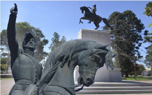 El monumento al Gral San Martín colocado en la Plaza de Monte Maíz no es el que primero llegó a la localidad.