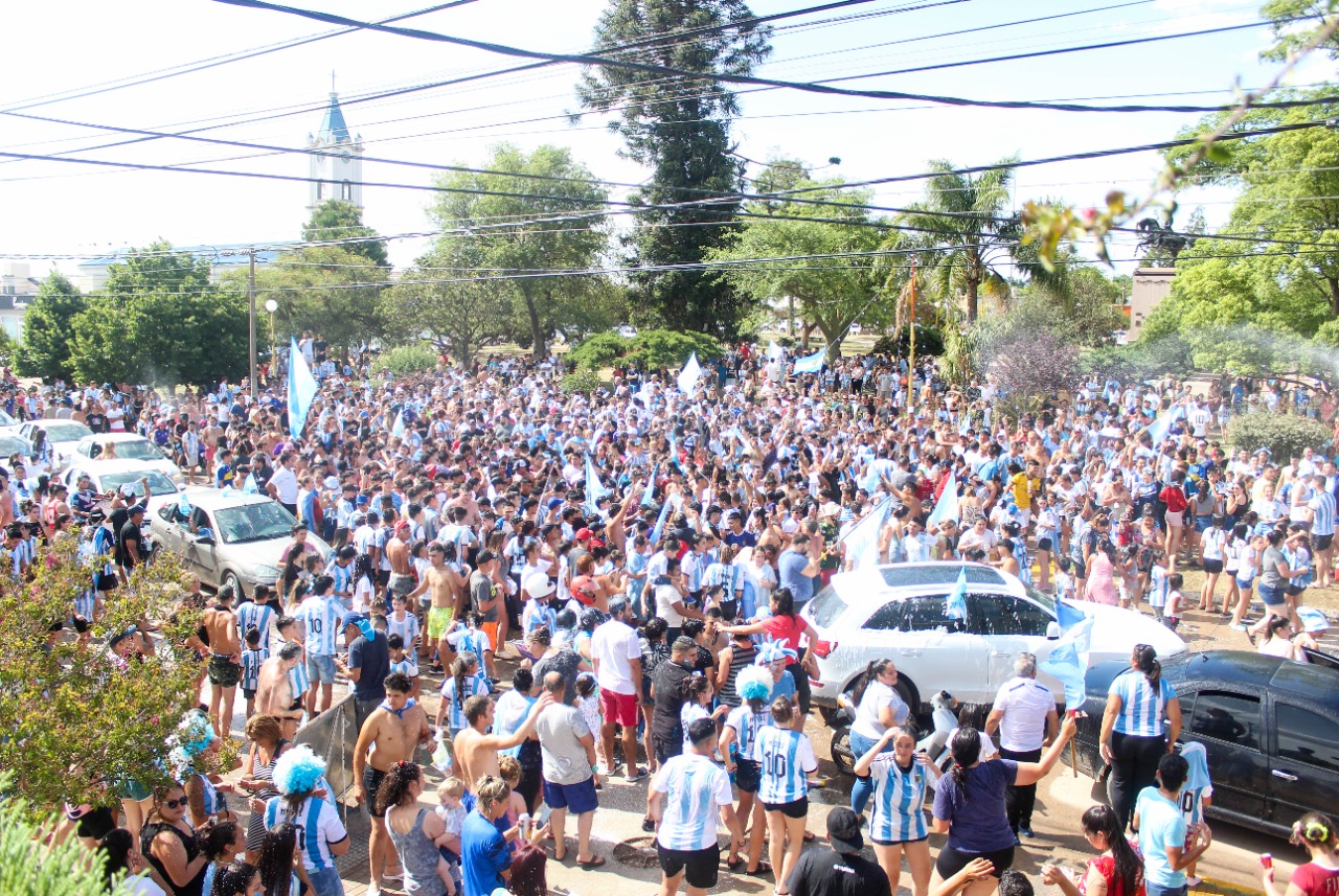 Luego, y pese a la alta temperatura, la gente se congregó en la plaza y en la intersección de la calle Córdoba y 9 de Julio para soltar su locura por este Campeonato. Hubo caravana por la calles céntricas, música, baile, bombos y mucha fiesta para la celebración del Campeonato mundial obtenido en Qatar.