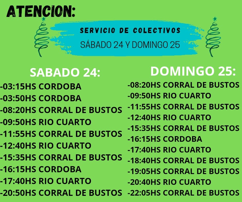 HORARIOS DE COLECTIVOS PARA NOCHE BUENA Y NAVIDAD