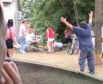 Según lo que se pudo ver en algunos videos, habrían ingresado al patio de una vivienda en donde comenzaron las piñas.
