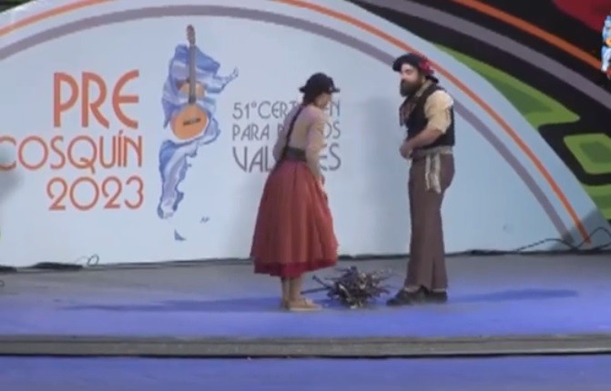 La pareja de bailarines Paula Landaluce y Laureano Montesanto participaron de la semifinal del Precosquín en la ciudad serrana en el escenario Atahualpa Yupanqui.