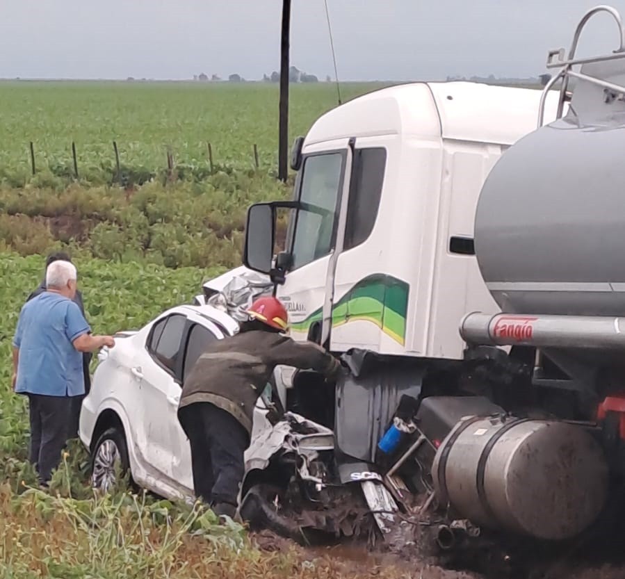 Allí colisionaron de manera frontal un camión y un auto Fiat Cronos.