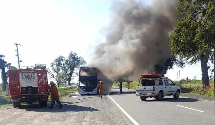 Esta mañana un colectivo interurbano de la empresa Coata-Córdoba S.A. se incendió sobre la ruta provincial 9, entre las localidades de Pilar y Laguna Larga. Dentro de la unidad viajaban 30 personas junto al chófer de la empresa, quienes afortunadamente resultaron ilesos.