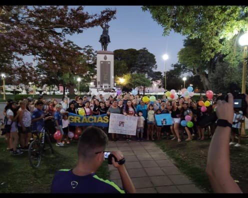 Unas 200 personas se congregaron en la plaza José de San Martín para caminar y agradecer por la aparición de Gian y acompañar a la familia Zapata.