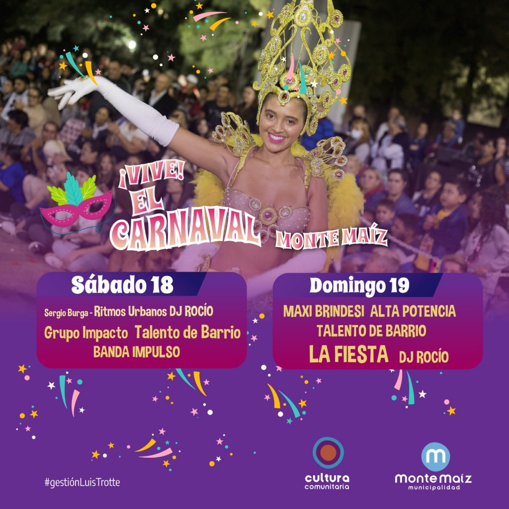 El Departamento de Cultura Municipal confirmó la fecha y la programación de los carnavales 2023. Tal como ocurrió el año pasado, la fiesta popular será nuevamente organizada por el Municipio, ya que la pandemia puso fin a los carnavales que anteriormente organizaban los Clubes de Monte Maíz.