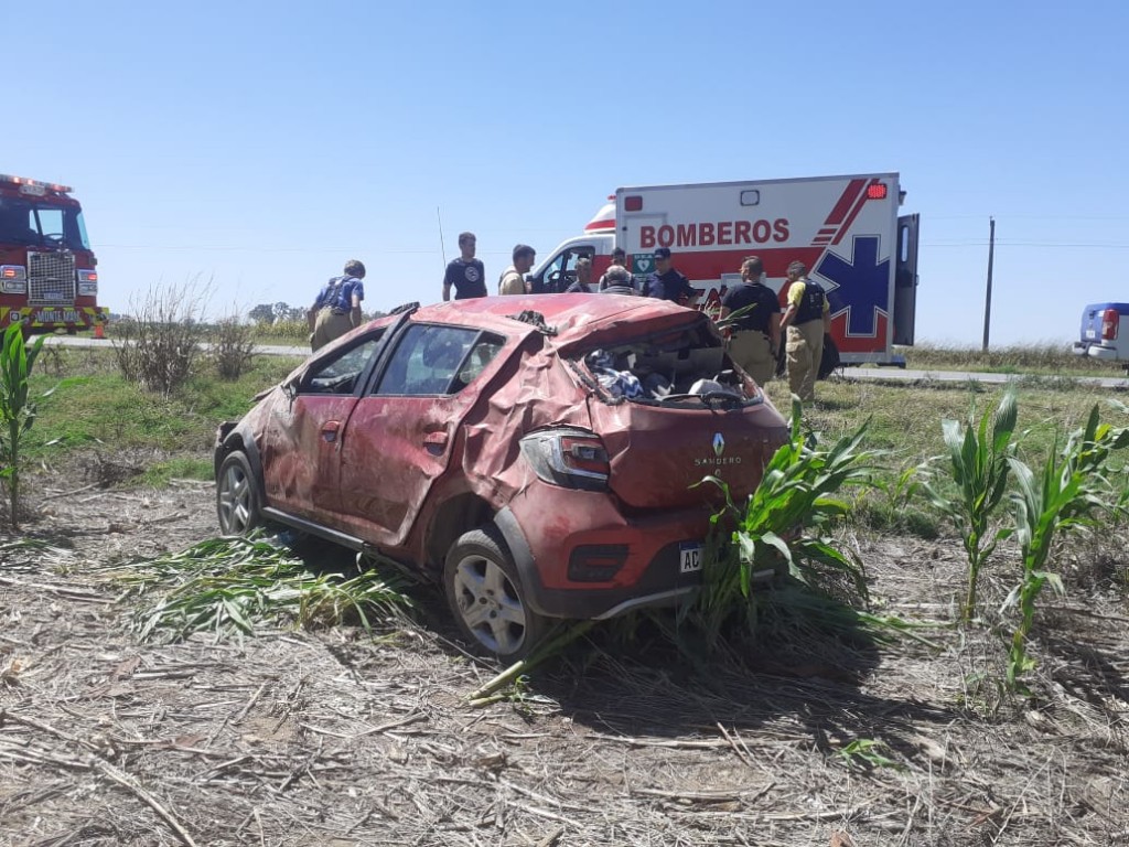 Cerca del mediodía de este domingo, Bomberos Voluntarios de Monte Maíz fueron convocados a ruta provincial N° 2, a 8 kms. aproximadamente del acceso a Colonia Bismarck por el vuelco de un automóvil Renault Sandero, dominio AC 238 AS, cuyos ocupantes pudieron salir por sus propios medios.
