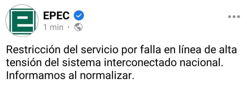 La restituci�n del servicio podr�a demorar entre dos y tres horas desde que se ocasion� el apag�n.