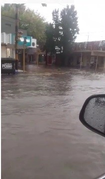 Vecinos de Justiniano Posse registraron y reportaron problemas de anegamiento de calles en la tarde de este martes.