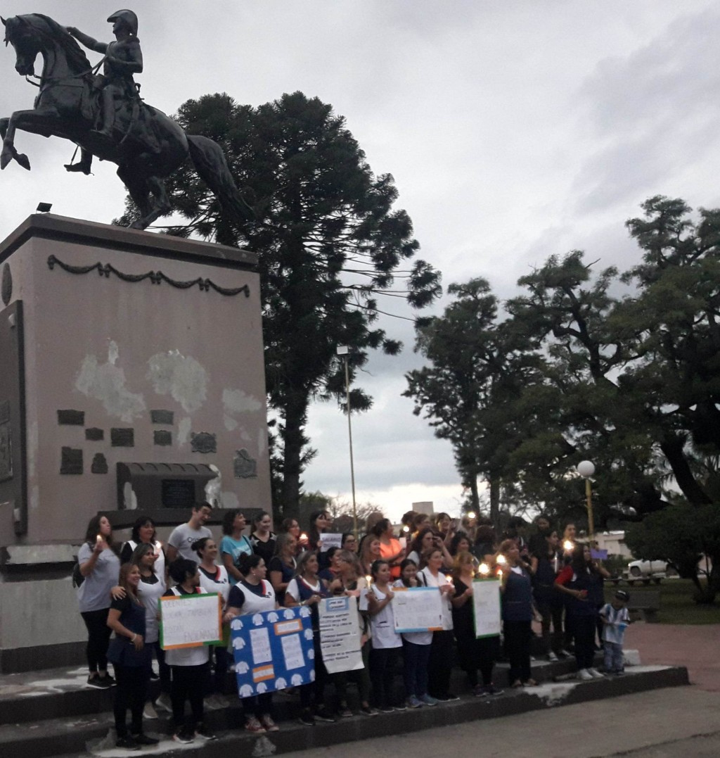 Algunas de las docentes asistieron con antorchas para manifestarse. Hubo una reunión en la plaza y luego se caminó alrededor de la misma reclamando por la mejora salarial.