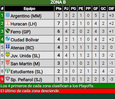 Con este resultado Argentino es el líder de la Zona B con 7 unidades aventajando por diferencia de goles a Huracán Las Heras.