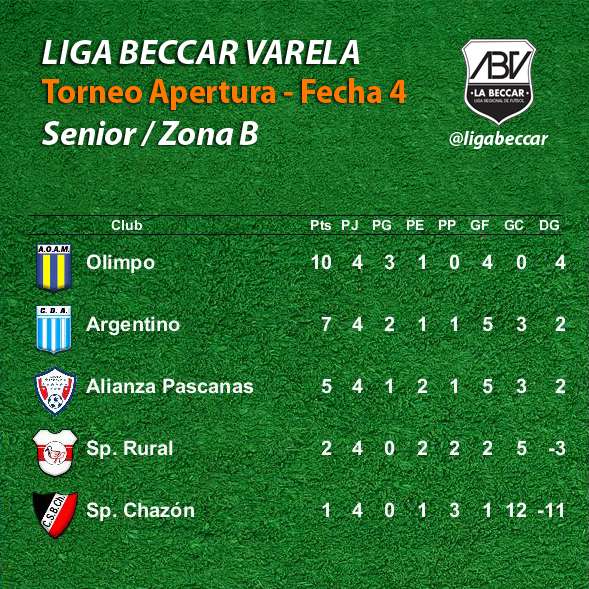 EN LA ZONA "B" OLIMPO ES EL PUNTERO Y ARGENTINO EL ESCOLTA