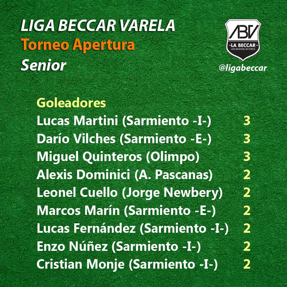Sarmiento (I) 3 (Lucas Fernández, Lucas Martini, Enzo Núñez) - Unión Lagunense 0