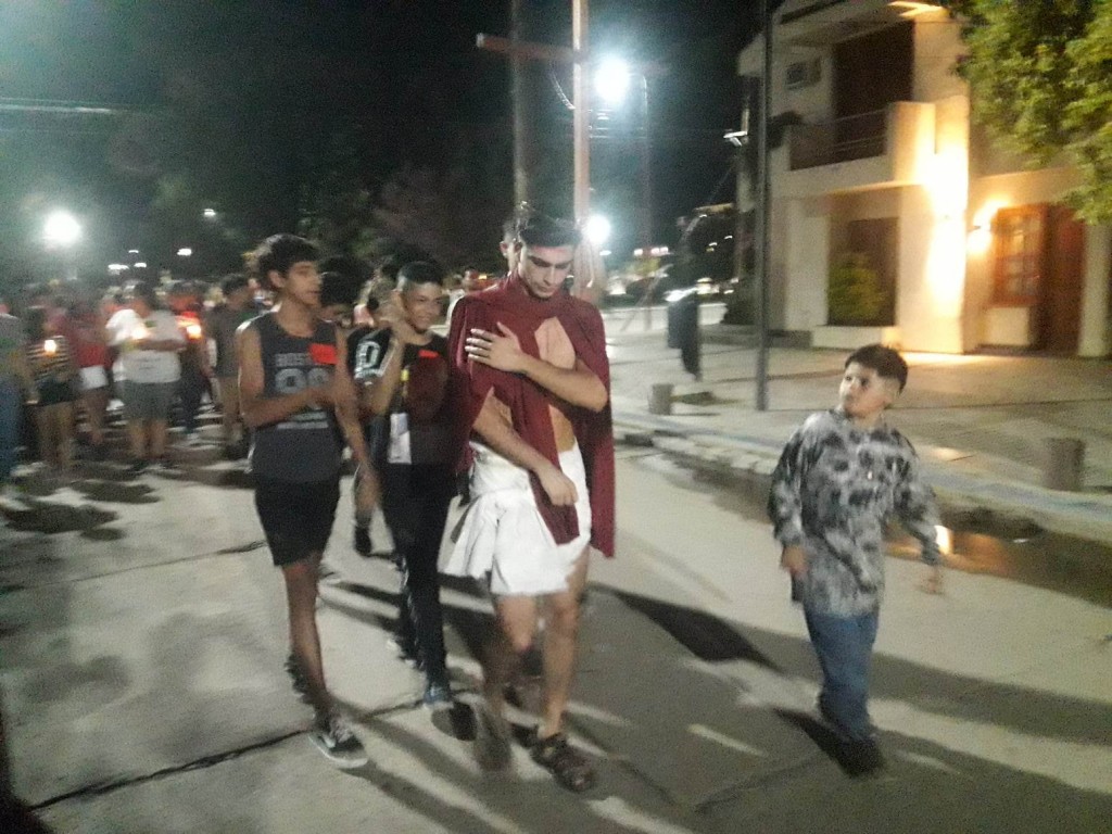 A lo largo de las estaciones se fue reviviendo la pasión de Jesús para finalizar nuevamente en la Parroquia. Fue una celebración muy concurrida y guiada por el Padre Martín Simonassi.