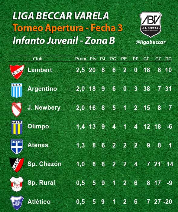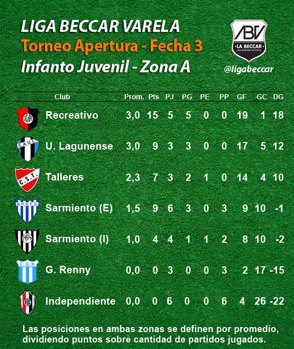 Se jugó en la tarde del sábado 15 de abril la 3ra fecha de los torneos Apertura Sub 13 “Primo Eduardo Baruffaldi”, Sub 15 “Enzo Luján” y Sub 17 “Reinaldo Modesto Campana", de la Liga Beccar Varela de fútbol.