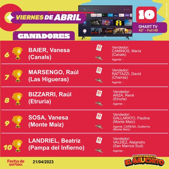 ¡Seguimos premiando y llevando alegrías a nuevos ganadores y más localidades!