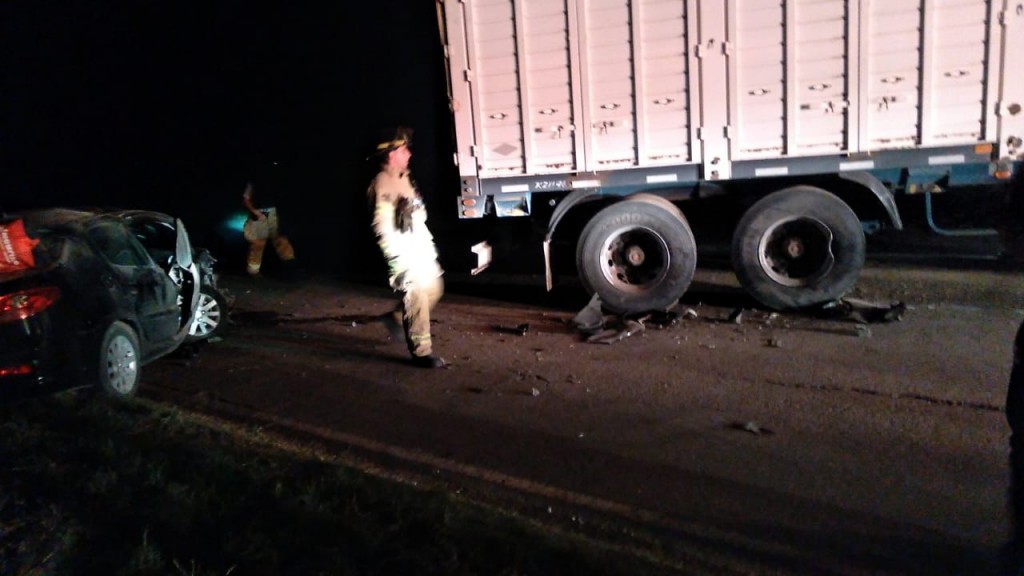 Los últimos datos aportados por personal de Bomberos es que cuatro personas ocupantes del automóvil fueron trasladadas al Hospital de Monte Maíz con lesiones leves. En tanto, el chofer del camión se encontraba en buen estado de salud aunque también será trasladado al Hospital para una mejor atención.
