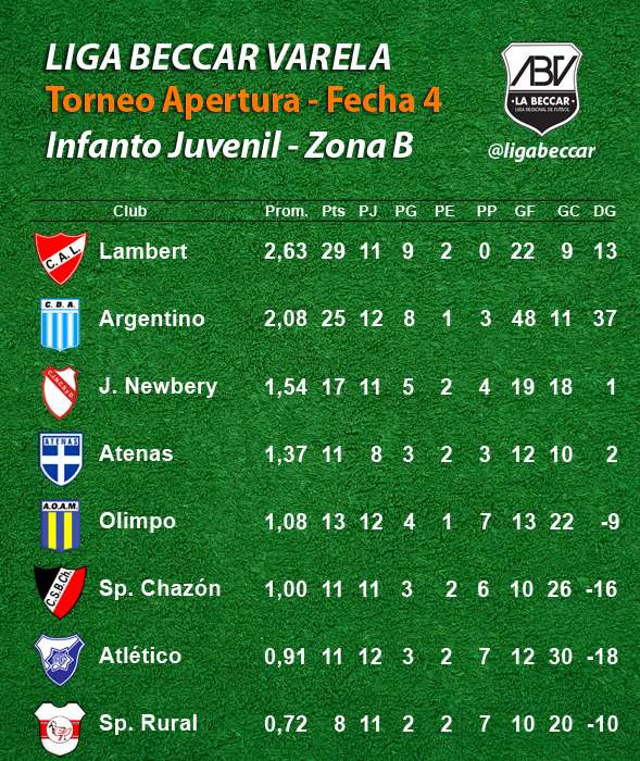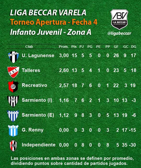 Se jugó en la tarde del sábado 22 de abril la 4ta fecha de los torneos Apertura Sub 13 “Primo Eduardo Baruffaldi”, Sub 15 “Enzo Luján” y Sub 17 “Reinaldo Modesto Campana", de la Liga Beccar Varela de fútbol.