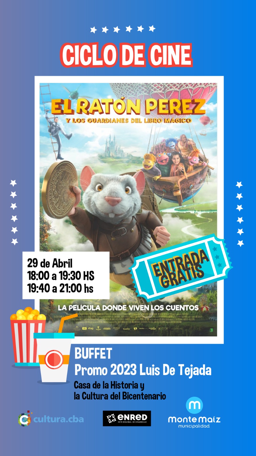 Este fin de semana se retoma el ciclo de cine infantil en la Casa de la Cultura y la Historia del Bicentenario con la proyección de la película “El Ratón Pérez” (Y los guardianes del libro Mágico).