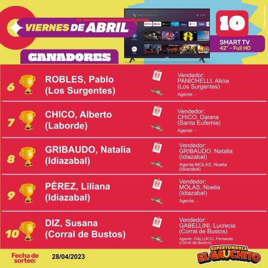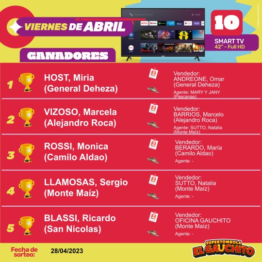 EN EL PREDIO DE LA SUPER TÓMBOLA EL GAUCHITOLOS GANADORES DE LA GAUCHADA