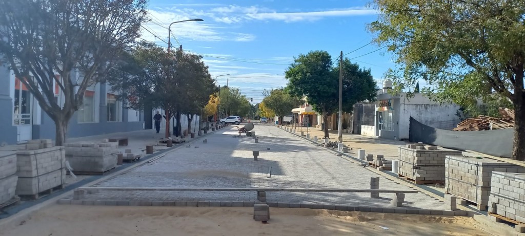 Avanza el trabajo de pavimento articulado en las calles de tránsito restringido. Por estos días se sigue trabajando en calle Córdoba, llegando a Buenos Aires, primera cuadra en la que se están colocando los adoquines.