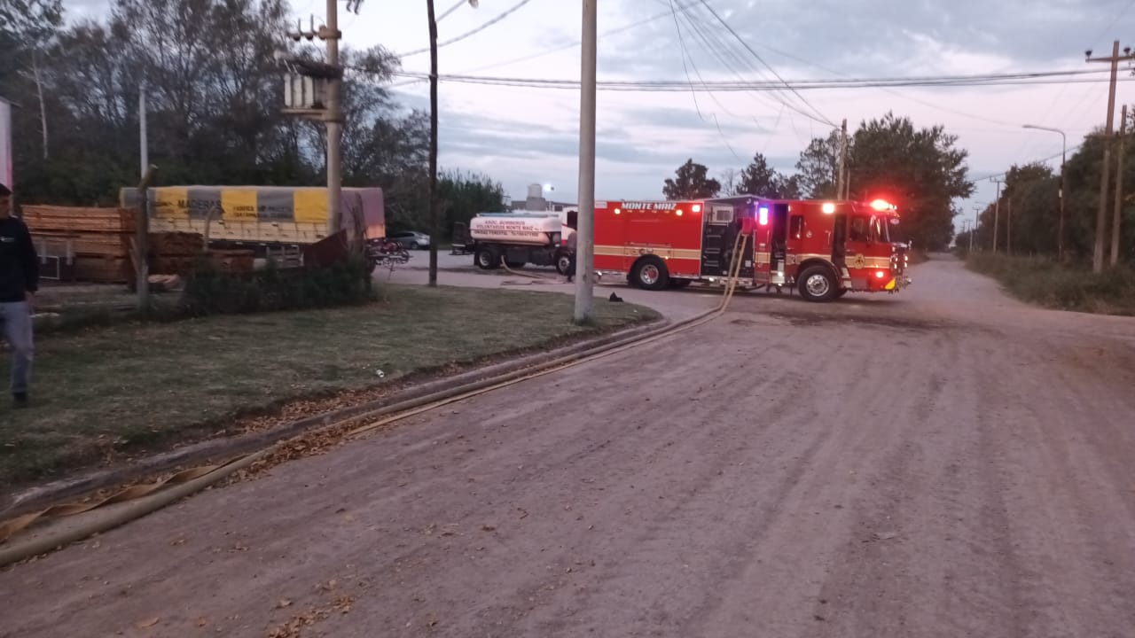A las 18:30 hs. aproximadamente de este miércoles, Bomberos Voluntarios de Monte maíz fueron convocados a B° Monterrey por un incendio en un aserradero.