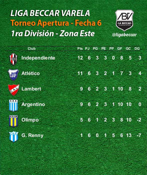 Atenas goleó y manda en la Zona Oeste del torneo Apertura, Talleres y Sportivo Rural son los nuevos escoltas. En la zona Este, Independiente se posicionó único líder al dar cuenta de Guillermo Renny.