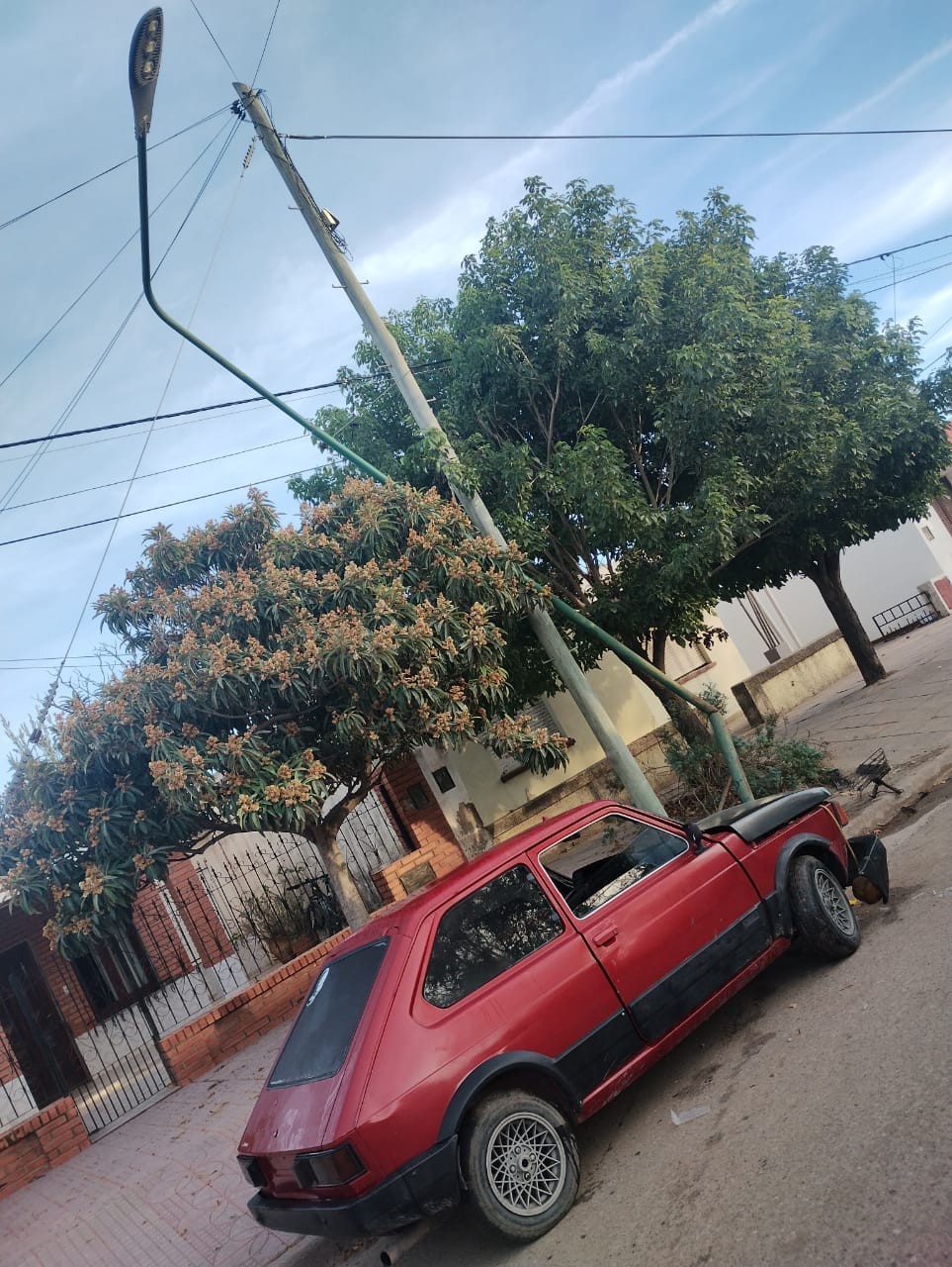 Tras averiguaciones se constató que los mismos impactaron con un poste del alumbrado público en la calle mencionada, quedando el vehículo en el lugar siendo este un Fiat 147 dominio XEY-409. Se procede al secuestro del rodado.