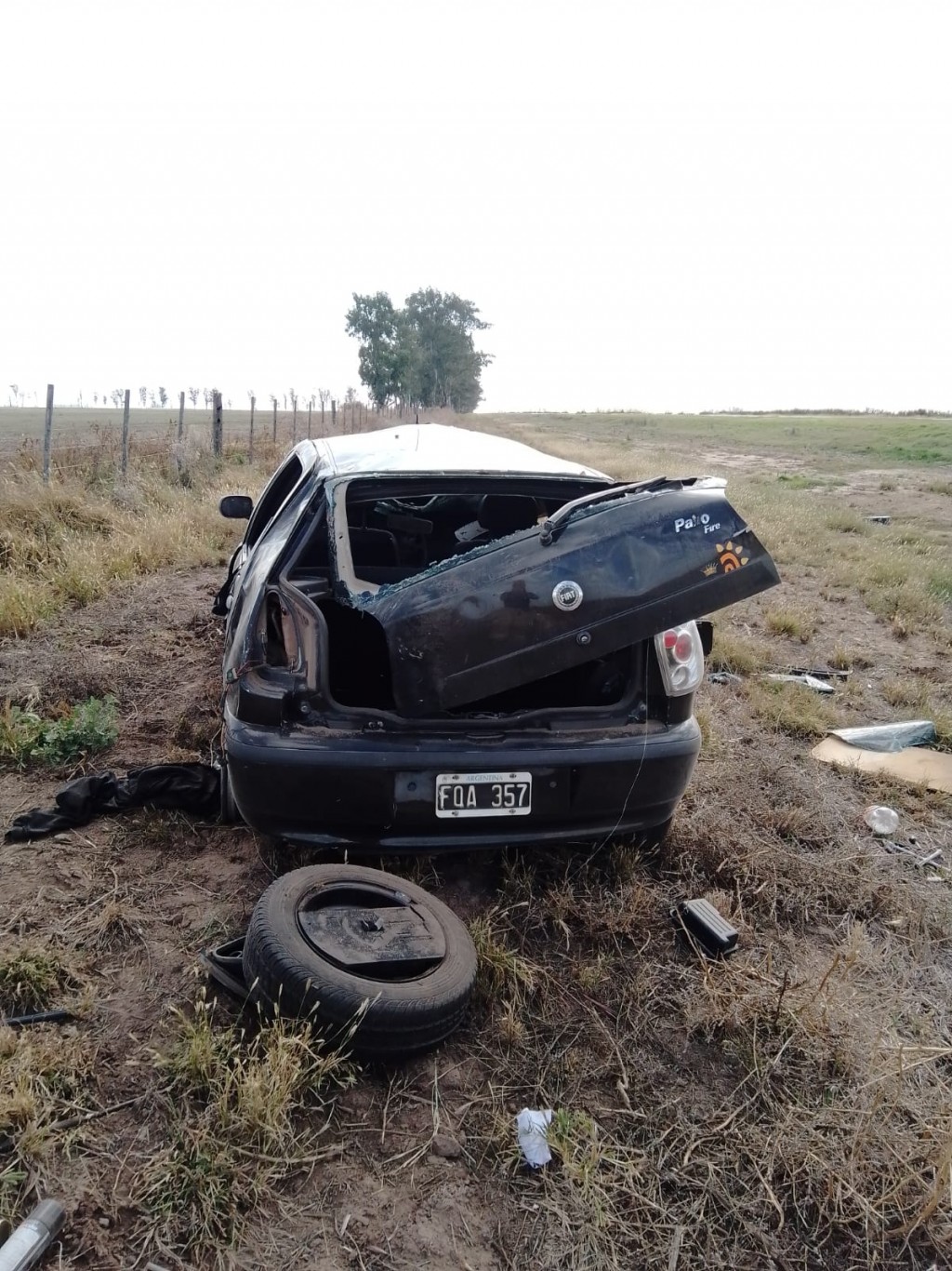 Al arribar al lugar, se constató el despiste y posterior vuelco en solitario de un automóvil Fiat Palio dominio FQA 357, de color negro, conducido por Jenifer Muttarelli, de General Baldissera (25), quien se dirigía hacia Benjamín Gould.