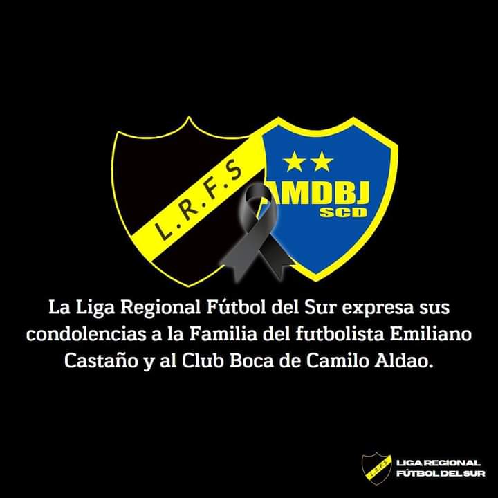 Tras la tragedia, la Liga Regional Fútbol del Sur espresó sus condolencias a la familia del joven y al Club Boca de Camilo Aldao en el cual jugaba al futbol.