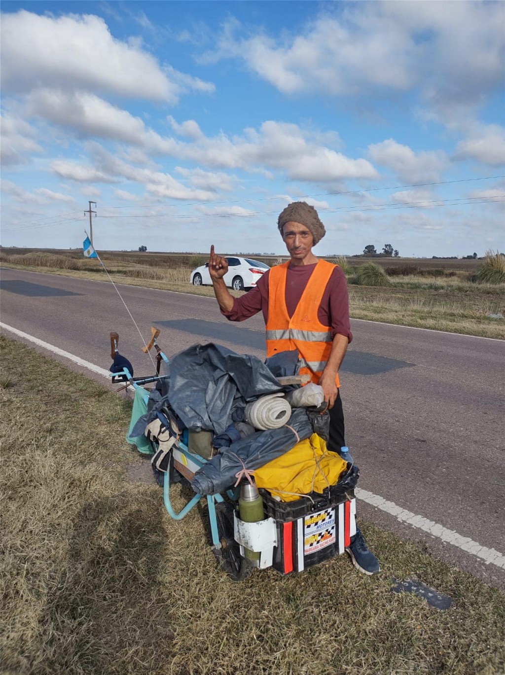 Lejos de rendirse, continúa con su viaje con destino a Puerto Madryn. Salió de Monte Maíz el dia 19 de mayo y piensa llegar a destino en el mes de agosto.