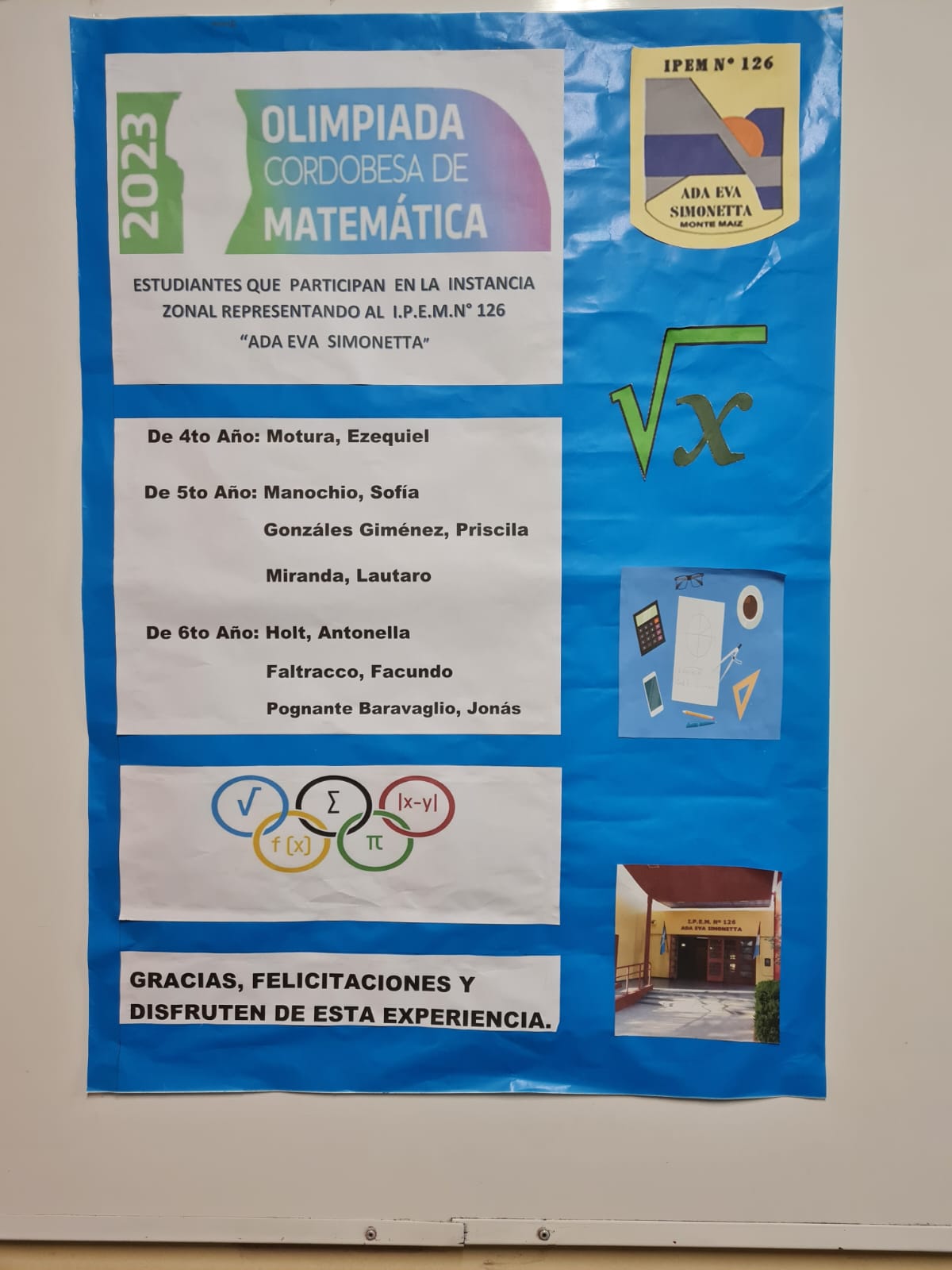 ALUMNOS DEL IPEM EN LAS OLIMPÍADAS DE MATEMÁTICAS