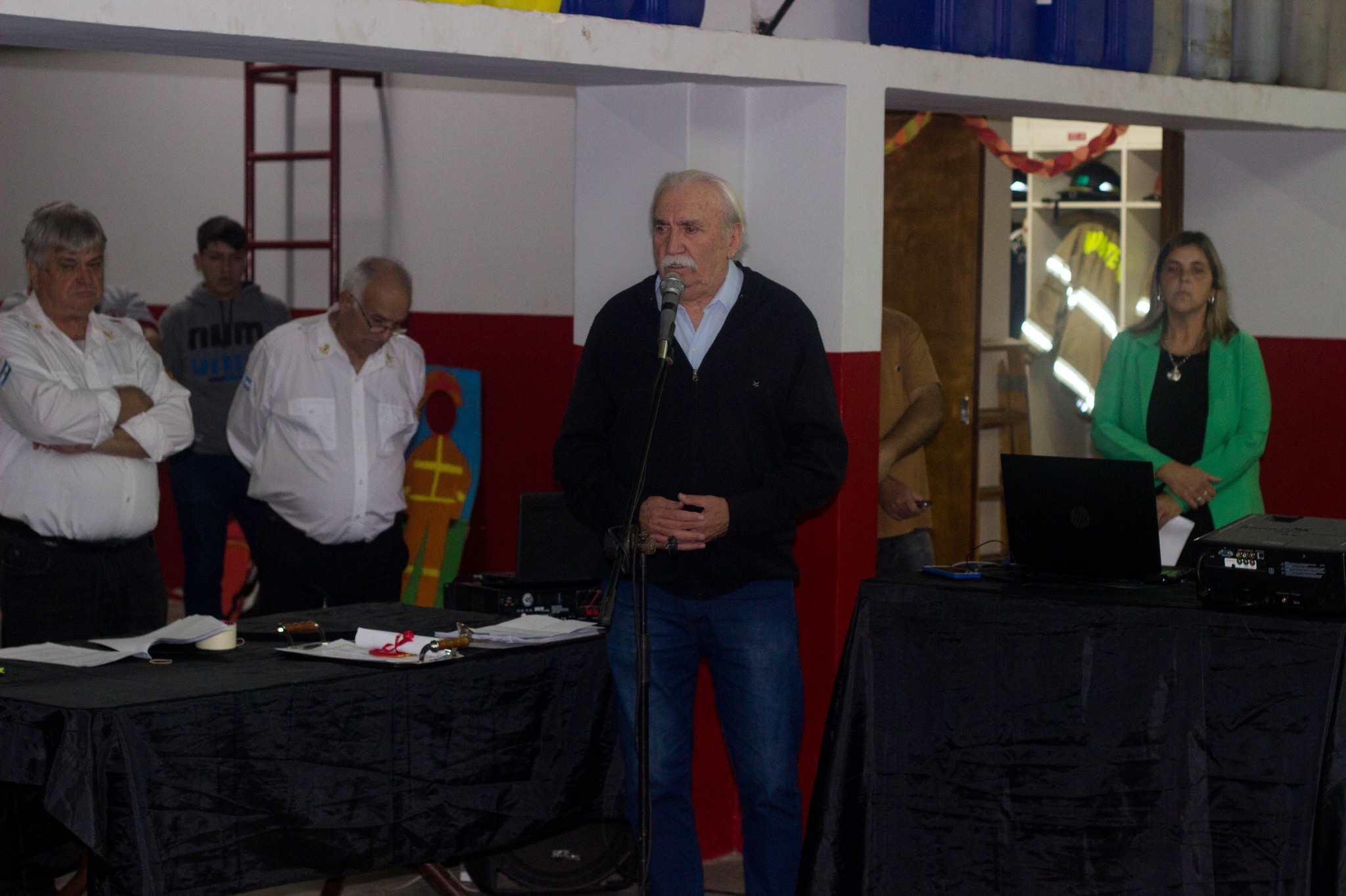El Intendente presenció el acto junto al Jefe de Cuerpo Activo, Gabriel Ramaccini; el Vicejefe de Cuerpo Actico, Leandro Minella, el Comisario Rolando Libra y junto a sus funcionarios, Ignacio Silva, Secretario de Gobierno; Marcelo Romani, Secretario de Obras Publicas y Esteban Sánchez, Secretario de Cultura.