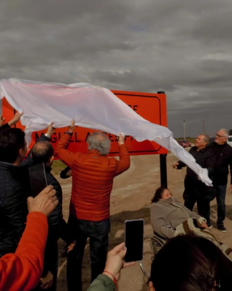 En el marco de la inauguración de la ruta a Colonia Barge, se le dio el nombre de Miguel Angel Pala al acceso a la mencionada localidad. Esto en homenaje al ex Jefe Comunal, quien gestionara esta obra y que falleció en ejercicio de sus funciones, durante la pandemia de coronavirus. Lamentablemente no pudo ver lo que tanto esfuerzo costó conseguir durante tantos años.