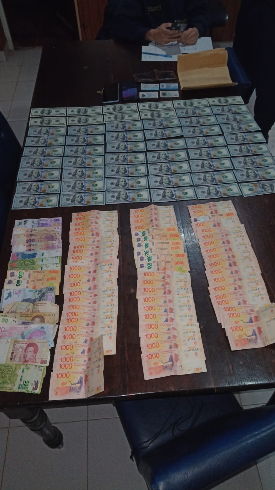 Se realizó el registro del rodado, logrando el hallazgo de dólares 5.400, sumado a dinero en efectivo de curso nacional, relacionados al hecho denunciado.