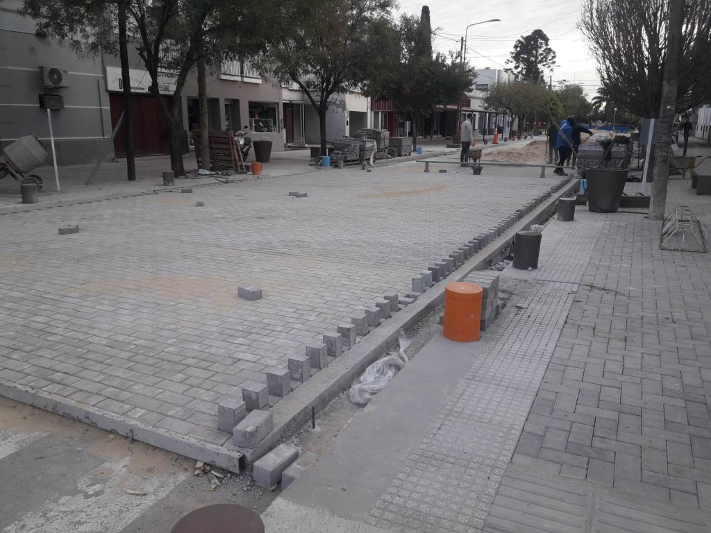 Personal Municipal está colocando adoquines en la segunda cuadra de tránsito restringido, en calle Córdoba, entre 9 de Juio y Entre Ríos.