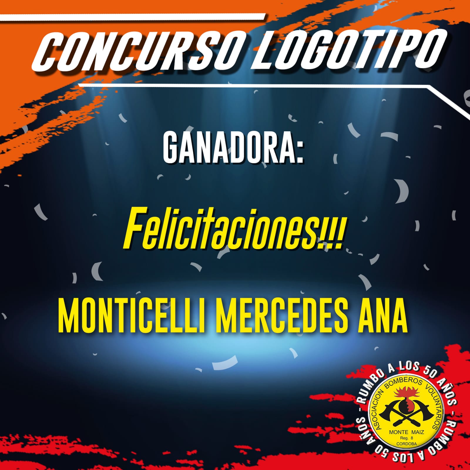 La Asociación Bomberos Voluntarios de Monte Maíz informó que la ganadora del concurso del logotipo de los 50 años de la institución es Mercedes Ana Monticelli.