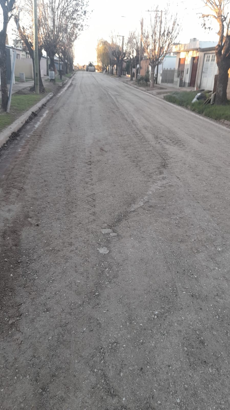 En la continuidad del plan integral de reconstrucción de calles, personal de obras públicas procedió a hacer el mejorado en calle Luis Lenardón de B° Praderio.