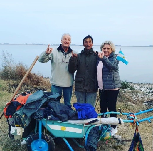 Este lunes estuvo en Guaminí provincia de Buenos Aires y mencionó que estaba en rutas 33 y 65. Allí comió un plato de comida caliente y una vecina del lugar le lavó la ropa. Hecho que agradeció en redes sociales “Metatalón”, tal su dirección en Instagram.