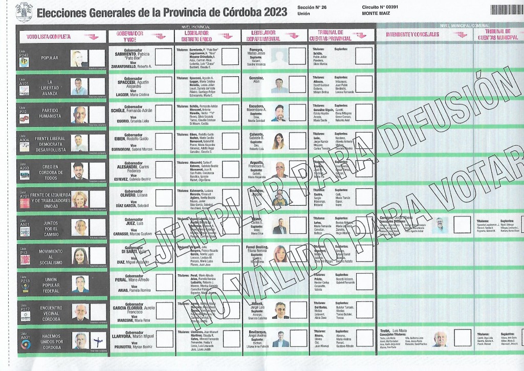 En diversos Municipios –como en Monte Maíz- se elegirán Intendente, Concejales y tribunos de Cuenta, los mismos se encuentran en la quinta fila. Y en las Comunas se elegirá a los integrantes de la Comisión Comunal y sus respectivos Tribunos de Cuenta.