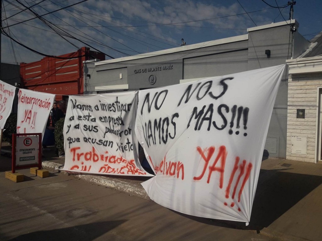 Una nueva manifestación de integrantes del Sindicato de Petroleros de Córdoba, tuvo lugar este mediodía al frente de la empresa  Gas de Monte Maiz S.A. en respaldo de un trabajador despedido, Lisandro Alaniz y de un trabajador recluido por la empresa, Daniel Gentile; todo esto según criterios del Sindicato.