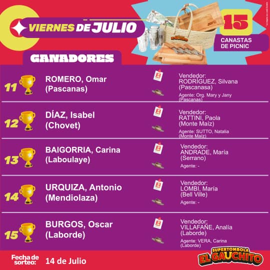 Llegamos a otro Viernes de premios y muchas alegrías que viajan a diferentes localidades.