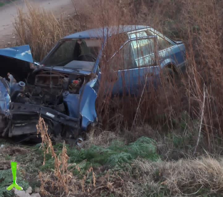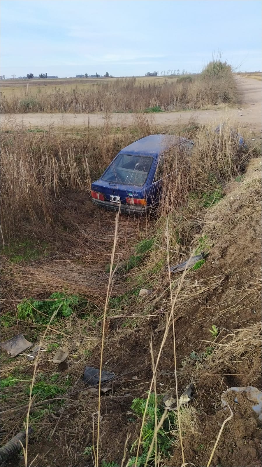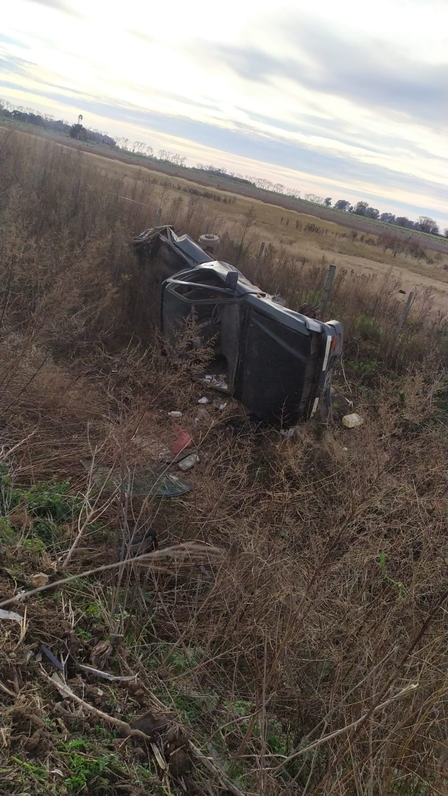 Al tomar por este camino alternativo, hacia Venado Tuerto, embistió una camioneta Toyota y ambos vehículos terminaron volcando al costado de un camino en un zanjón.