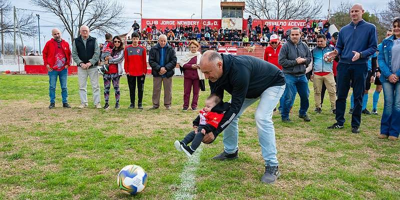 El estadio del Club Jorge Newbery de Ucacha fue escenario esta tarde del acto inaugural del Torneo Clausura “Diego "Golato" Corti" de Primera División. Familiares del malogrado futbolista quien perdiera la vida en un siniestro vial a fines de 2022, junto a integrantes de la mesa directiva de la Liga Beccar Varela que preside Walter Mellano, participaron de la emotiva ceremonia en el campo de juego del Aviador. Sus padres Malvina y Horacio, junto a sus hermanos Carlos y María Soledad, recibieron placas recordatorias. El pequeño Diego Francisco -hijo de Golato- dio el punta pié inicial en brazos del abuelo Horacio, en la previa al partido entre el local y Sarmiento de Idiazábal.