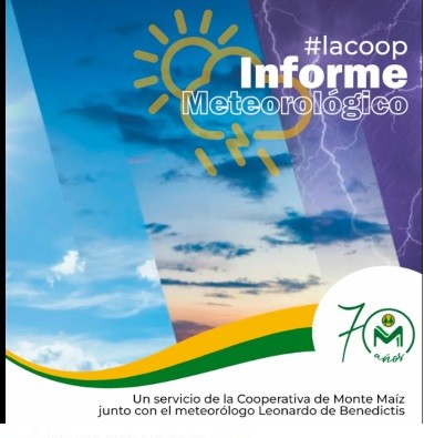 Un servicio de Cooperativa Agrícola de Monte Maíz junto con el meteorólogo Leonardo De Benedictis.
