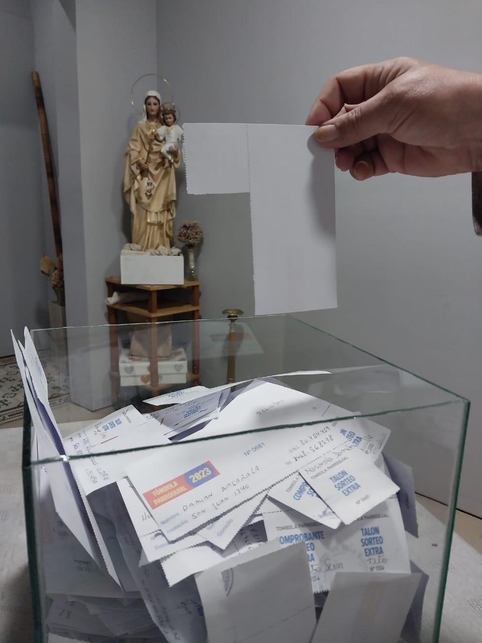El número fue extraído por el Padre Martín Simonassi en presencia de la escribana Silvana Ruffo e integrantes de la Comisión de Apoyo Parroquial, Mariela Bessone y Francisco “el Negro” Daperno.