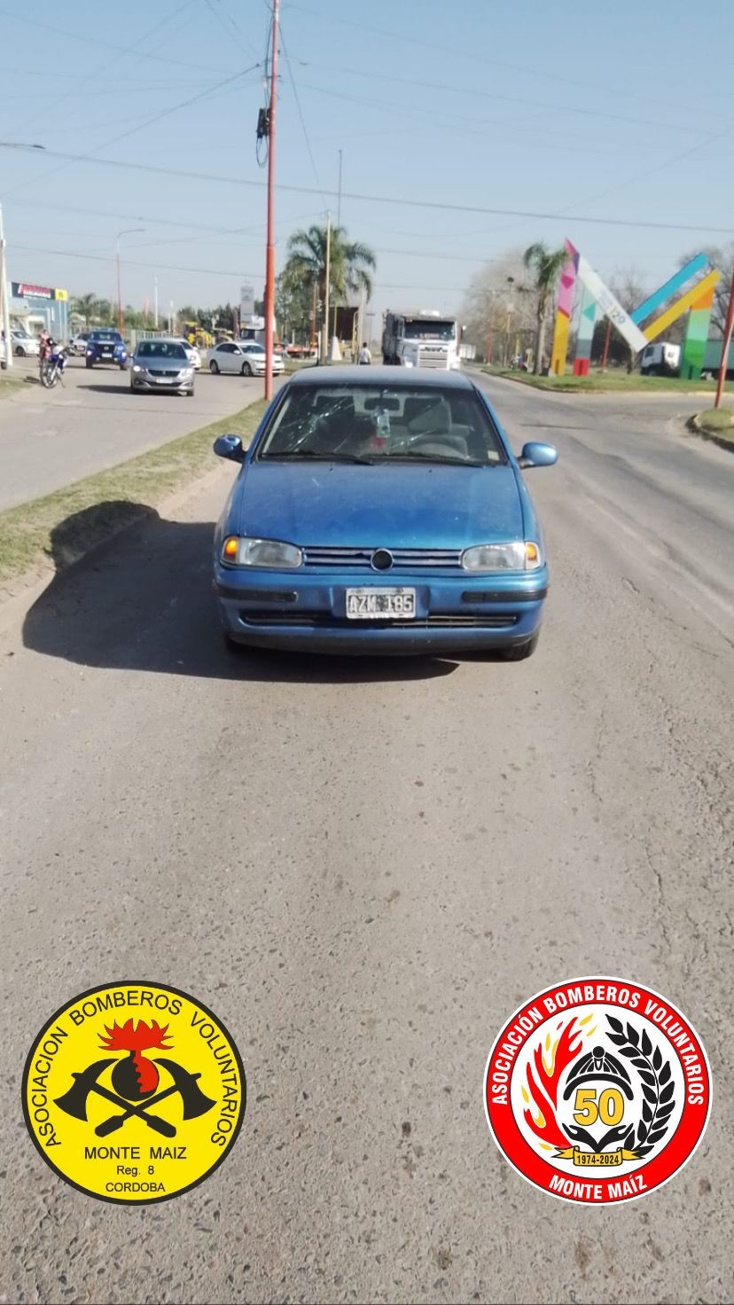 A las 11:02 de este miércoles, Bomberos Voluntarios de Monte Maíz fueron convocados a Avenida Juan Domingo Perón, rotonda de acceso oeste por una colisión auto y moto.